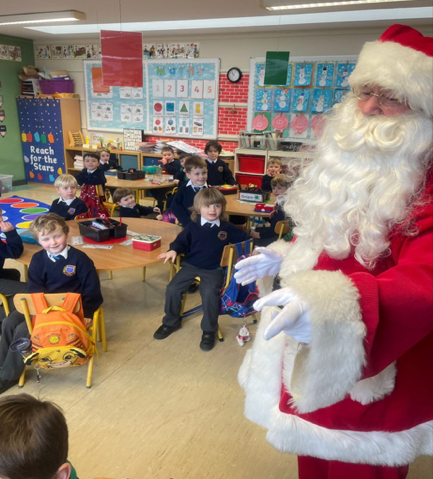 On Monday a very special visitor came to the school to see all the children. There was great excitement when the children saw Santa in their classrooms. The PA very kindly left a selection box for every child in the school as a special treat and to thank them for being so good this year.